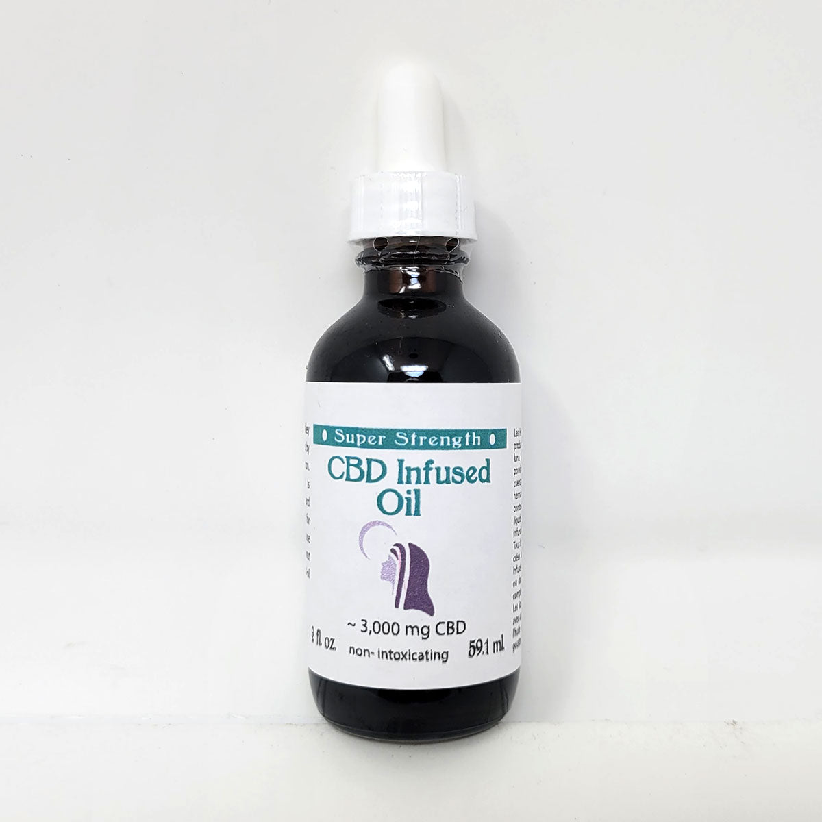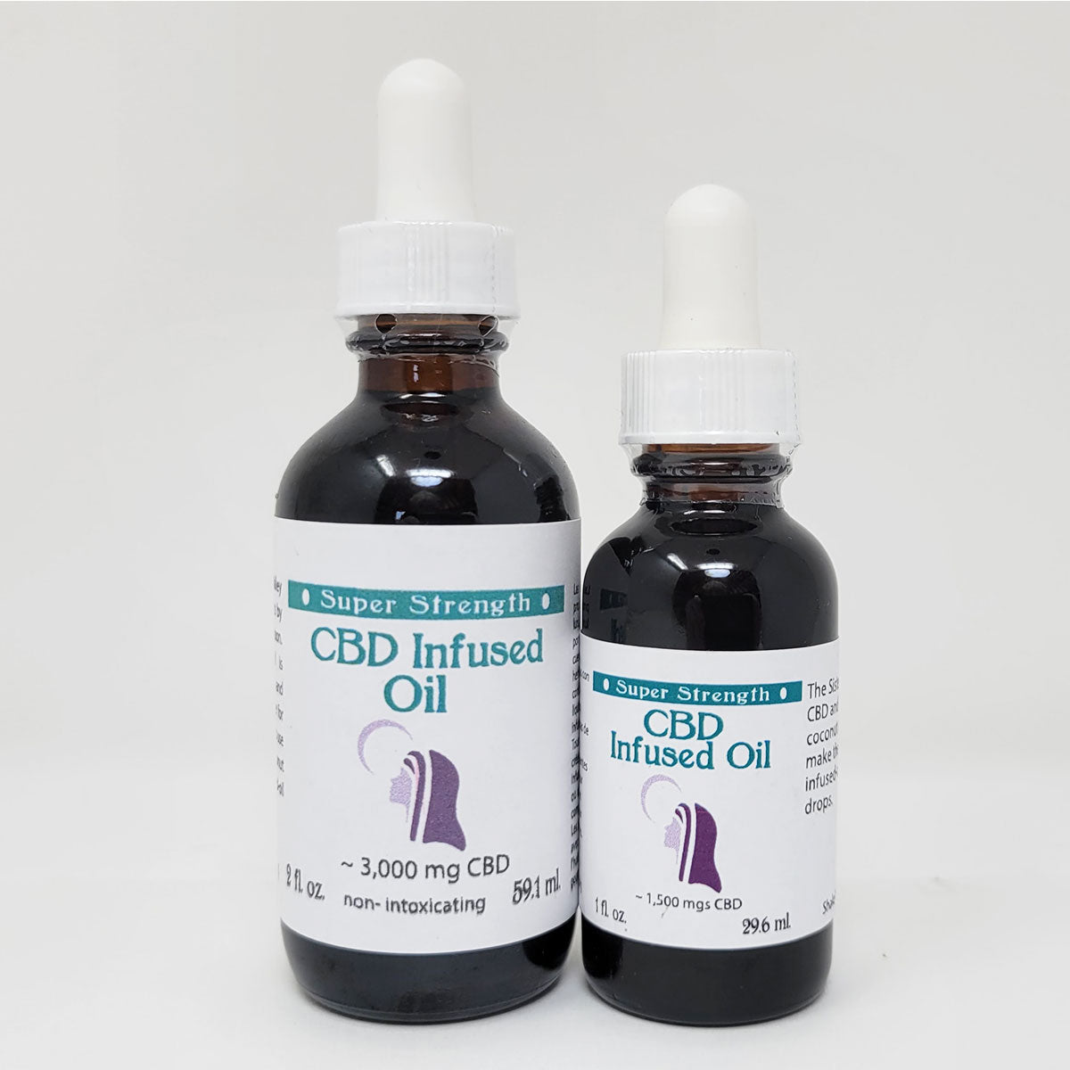 Choose the smaller, one-ounce size, or the larger, two-ounce size. 1 oz. (30 ml) of CBD-infused oil (w/ dropper) or 2 oz. (60 ml) of CBD-infused oil (w/ dropper).