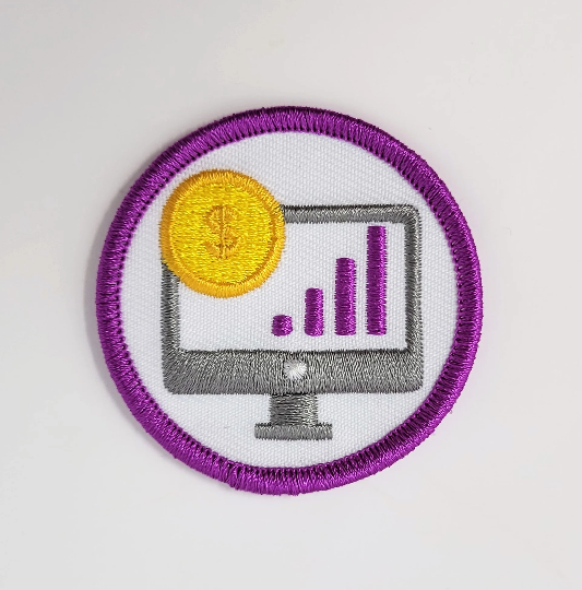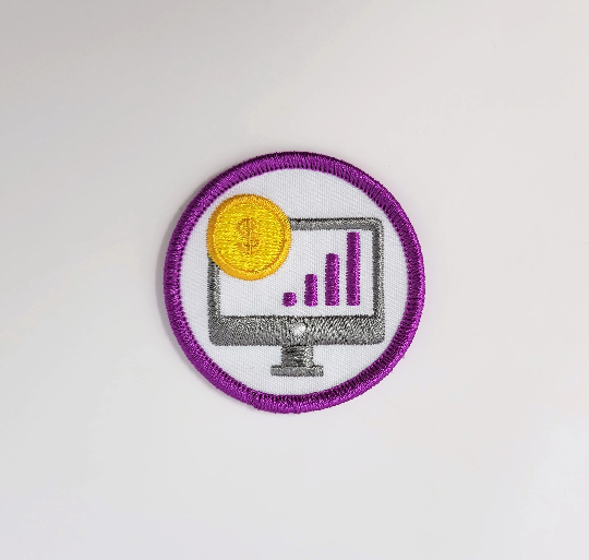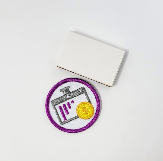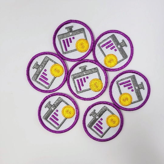 In the enclave of the Sisters of the Valley, hard work is recognized through a series of patches that were designed and custom-made for the Sisters. In an effort to share our culture (and to survive tough economic times), we are sharing our patches with the public. This particular patch is the badge earned when a Sister or Brother puts in over two years of dedicated work in the arena of Finance and bill-paying and purchasing and book-balancing and all that jazz.
